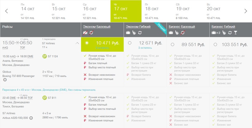 Учитывая сезонность прямых авиаперелетов из Анапы в Томск, отсутствие ежедневных рейсов и высокую цену на билеты, очевидно, что я рассматривала полеты с пересадками. Стыковочных авиарейсов по маршруту также не очень много.