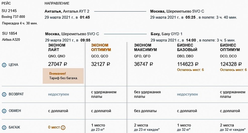 Pegasus (PC 1806) Airbus А320 | 00:15 Анталия (AYT) | 2 ч. 35 мин | 03:50 Баку (GYD) | 30 марта |