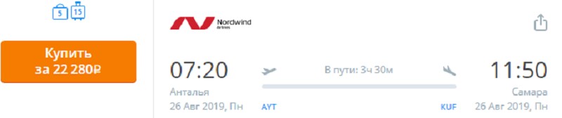 Аэрофлот (SU 797) Boeing 737-800 | 09:40 Анталия (AYT) | 4 ч. 05 мин | 14:45 Самара (KUF) | 9, 11 октября |