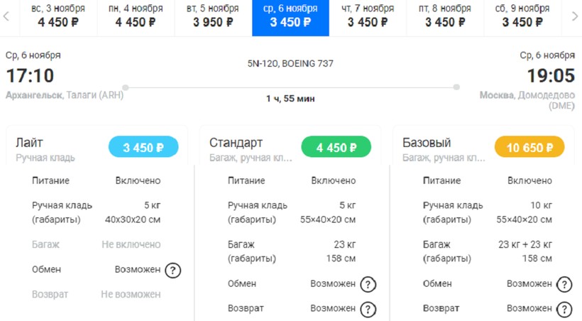 Для экономии у перевозчика могу также рекомендовать купить билеты без багажа (если вы летите на небольшой срок или путешествуете налегке), правда дешевле они будут всего на 1000 ₽. Кстати, минусом у Smartavia является то, что максимальный вес ручной клади составляет всего 5 кг, а это в два раза меньше аэрофлотовской нормы.