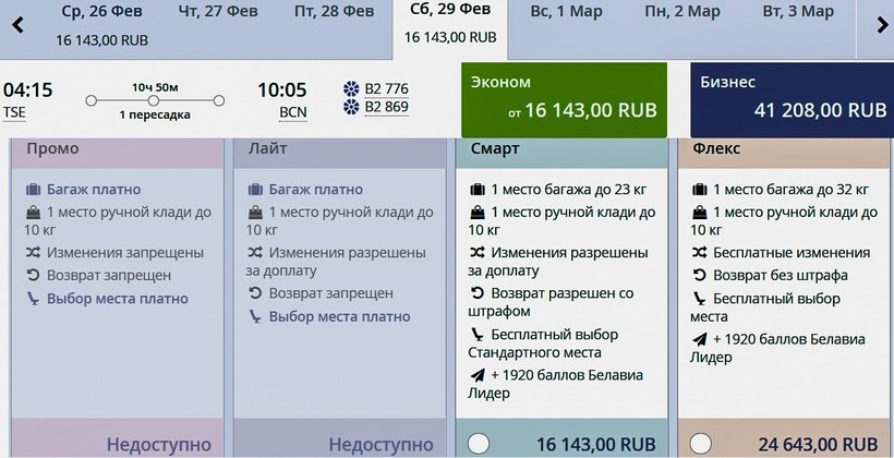 Билеты «туда-обратно» в феврале обойдутся вам всего в 19 277 рублей, а в августе придется заплатить за них не менее 59 503 рубля. В среднем же, долететь до Барселоны и вернуться в Нур-Султан (Астана) можно за 38 222 рубля.