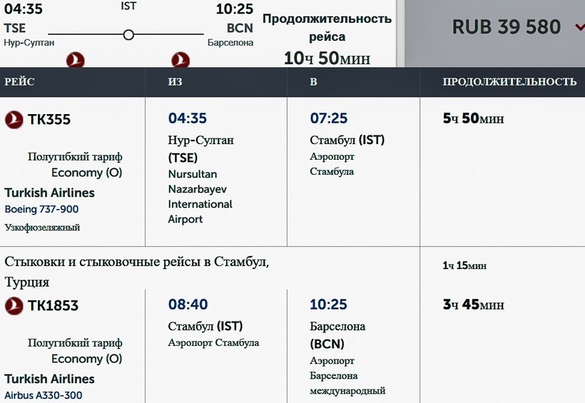 Рейсы Нур-Султан (Астана) — Барселона осуществляют следующие авиакомпании: