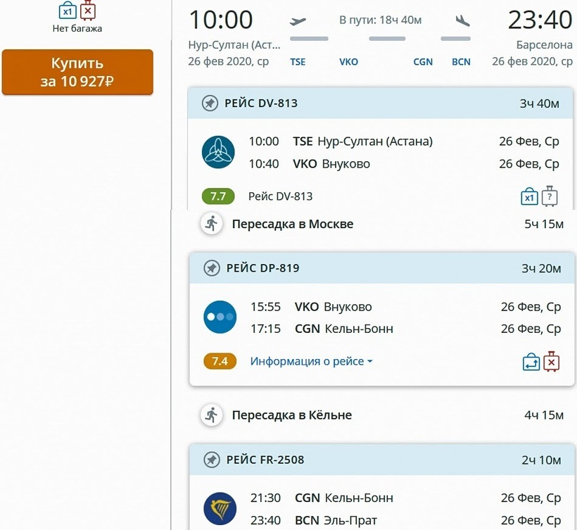 Привет всем, с вами опять я — Валентина, любительница авиапутешествий и всего, что с ними связано! Сегодня я с помощью команды TravelAsk хочу рассказать о типах рейсов, выборе билетов и других особенностях перелета из Нур-Султана (бывшая Астана) в Барселону.