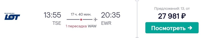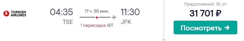 Рейсы Нур-Султан (Астана) — Нью-Йорк осуществляют следующие авиакомпании: