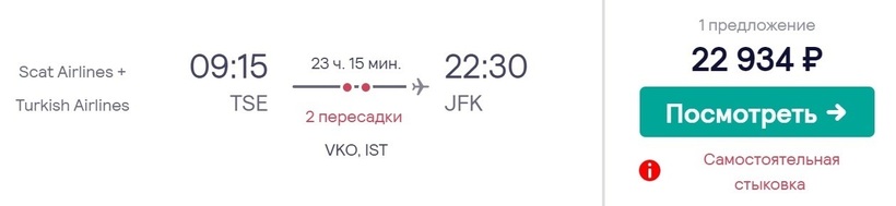 Причем в Москве стыковка будет самостоятельной. Нужно будет позаботиться о своем багаже (забрать и заново его сдать), пройти процедуру регистрации на следующие рейсы до Стамбула и Нью-Йорка, паспортный и таможенный контроль. Чтобы добраться до воздушной гавани вылета — международного аэропорта имени Нурсултана Назарбаева, можно сесть, например, на автобус № 100.