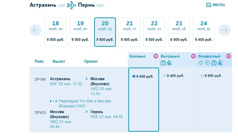Билеты «туда-обратно» в феврале обойдутся вам всего в 18 756 рублей, а в январе придется заплатить за них не менее 23 135 рублей. В среднем же, долететь до Перми и вернуться в Астрахань можно за 21 547 рублей.
