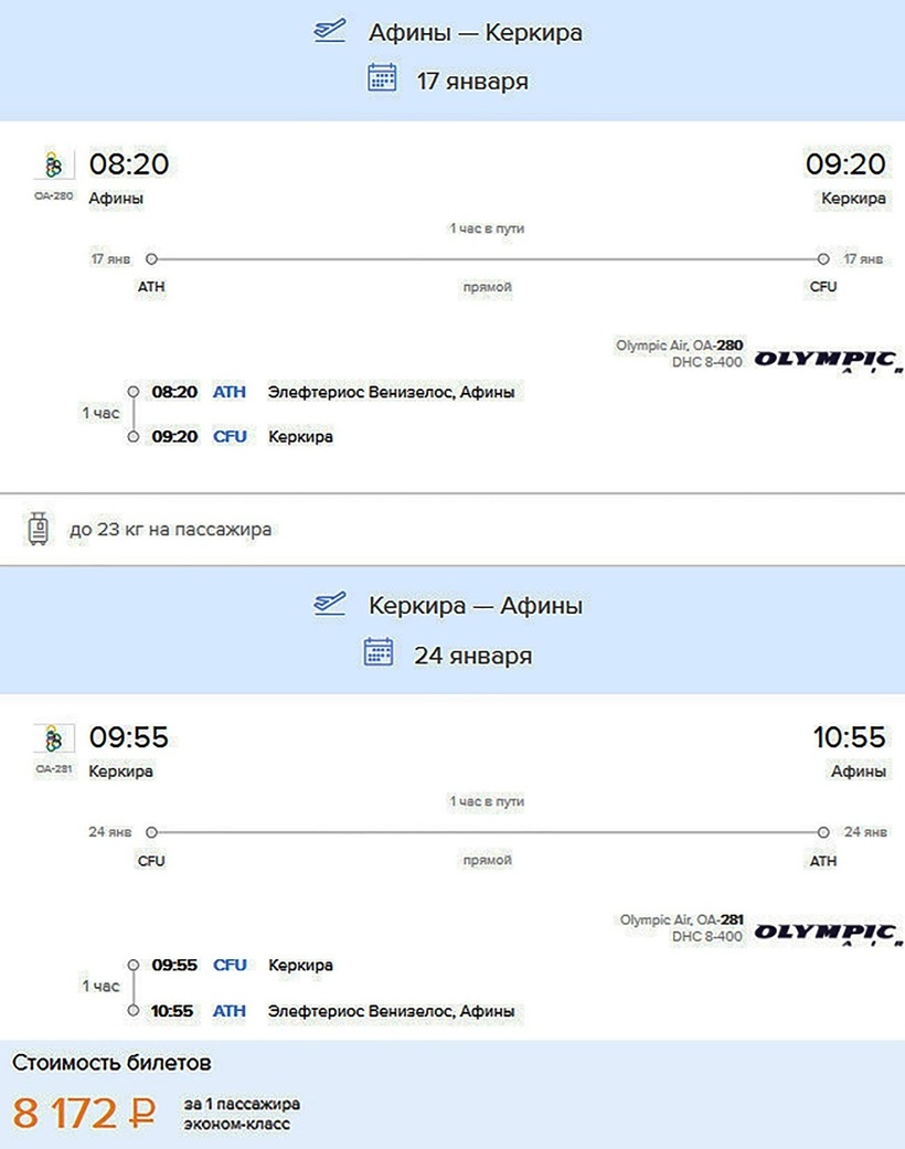 Билеты «туда-обратно» в декабре обойдутся вам всего в 7 234 рубля, а в октябре придется заплатить за них не менее 36 695 рублей. В среднем же, долететь до Корфу и вернуться в Афины можно за 13 898 рублей.
