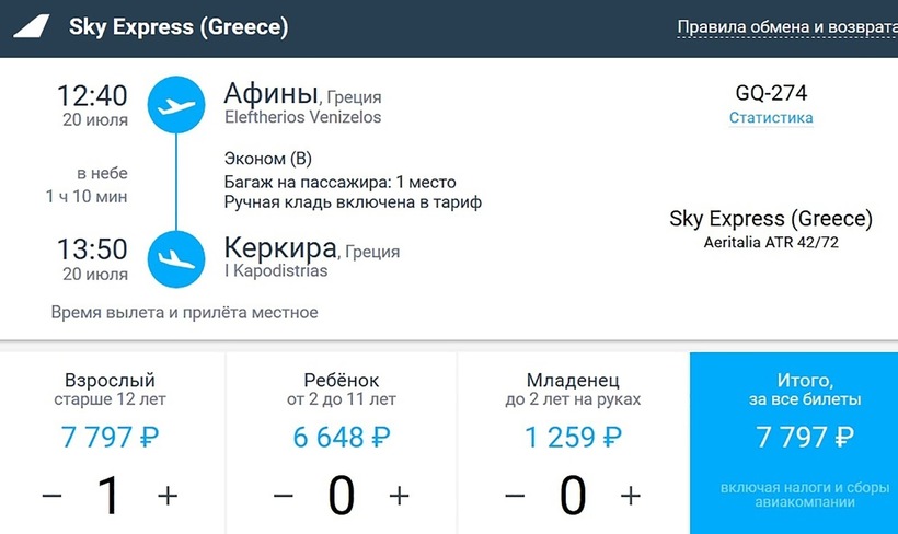 Если вы отправляетесь на Корфу на Пасху, то советую лететь на самолете Sky Express: заплатив 8500 ₽, вы сможете взять с собой ручную кладь (6 кг) плюс вещи на 15 кг. Тогда как билет за 10000 ₽ у Olympic Air включает только ручную кладь на 8 кг. Но в другое время года выбирайте полет с перевозчиком Olympic Air (авиабилеты дешевле на 1–2 тысячи ₽). Также его лайнеры выполняют 15–22 авиарейса в неделю, тогда как у Sky Express за это же время 10–15 вылетов.