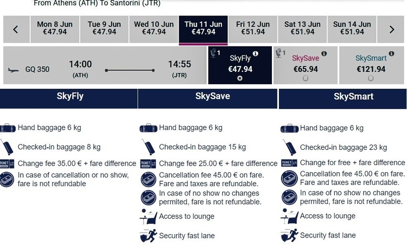 Sky express (GQ 354) ATR 42/ATR 72 FR/IT | 17:40 Афины (ATH) | 55 мин | 18:35 Тирасия (JTR) | 11 октября |
