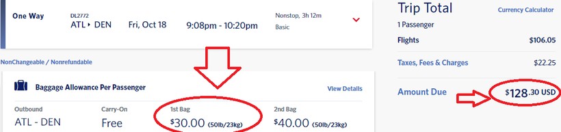 Но хочу обратить внимание, что у перевозчика бывают ценовые скачки на пиковые даты авиапутешествий (новогодние и рождественские праздники), когда стоимость возрастает до 13000 ₽ (только туда). На такие дни рекомендую искать альтернативный вариант полета либо бронировать билеты заранее. А вот с багажом лететь с Frontier Airlines не очень выгодно, ведь доплата за него составит от 2500 ₽, что даже больше, чем у крупных авиакомпаний.
