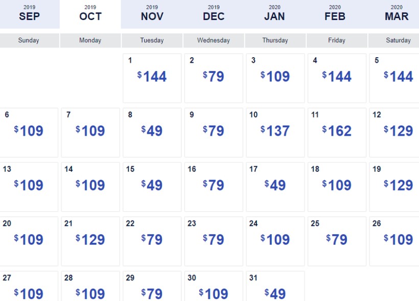 Southwest Airlines. Этот лоукостер выполняет ежедневно по четыре авиарейса. По ценам у этого оператора преимуществ перед Frontier нет: перелет с ручной кладью только туда в среднем обойдется в 5000–7000 ₽ (на редкие вылеты — от 3000 ₽), в обе стороны — от 10000 ₽. Плюсом этой бюджетной компании могу назвать то, что за багаж нужно платить только по 1500 ₽.