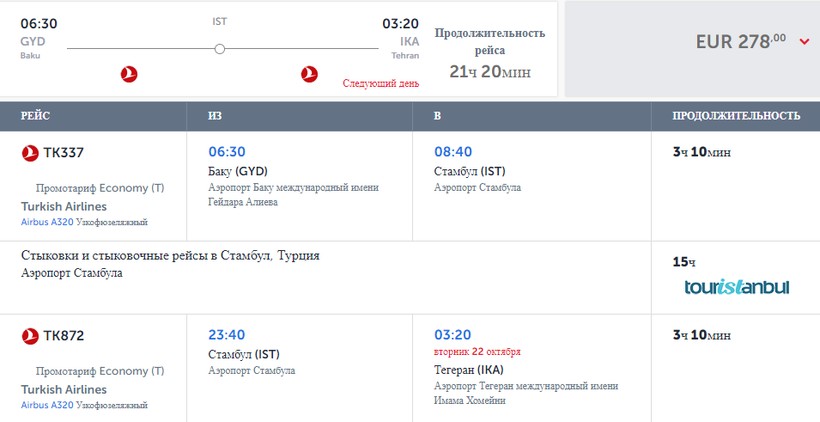 | Азербайджан Хава Йоллары (J2 8017) Embraer 190 | 21:20 Баку (GYD) | 1 ч. 25 мин | 22:15 имени Имама Хомейни () | 22, 24, 27, 28, 29 ноября, 1, 4, 5, 6, 8, 11, 12, 13, 15, 18, 19, 20, 21, 22, 23 декабря, … |