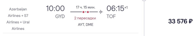 Стоимость билетов в одну сторону составляет от 30600 рублей. Время в пути — 20 часов.