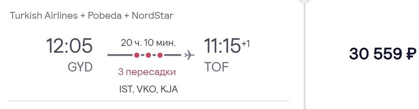 Правда, такой вариант неудобен тем, что нужно сделать три пересадки — в Стамбуле, Москве, Красноярске. На стыковки в общей сложности уйдет 7,5 ч.