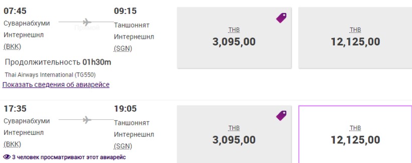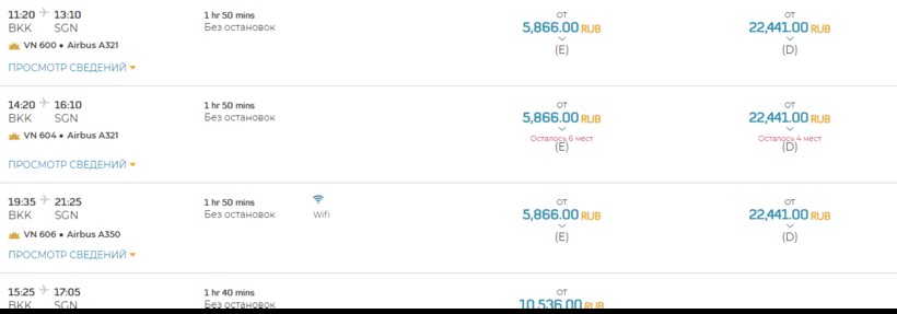 Vietjet air (VJ 804) Airbus А321 | 14:00 Бангкок (BKK) | 1 ч. 30 мин | 15:30 Хошимин (SGN) | 26, 27, 29, 31 октября, 2, 3, 5, 7, 9, 10, 12, 14, 16, 17, 19, 21, 23, 24, 25, 26 ноября, … |