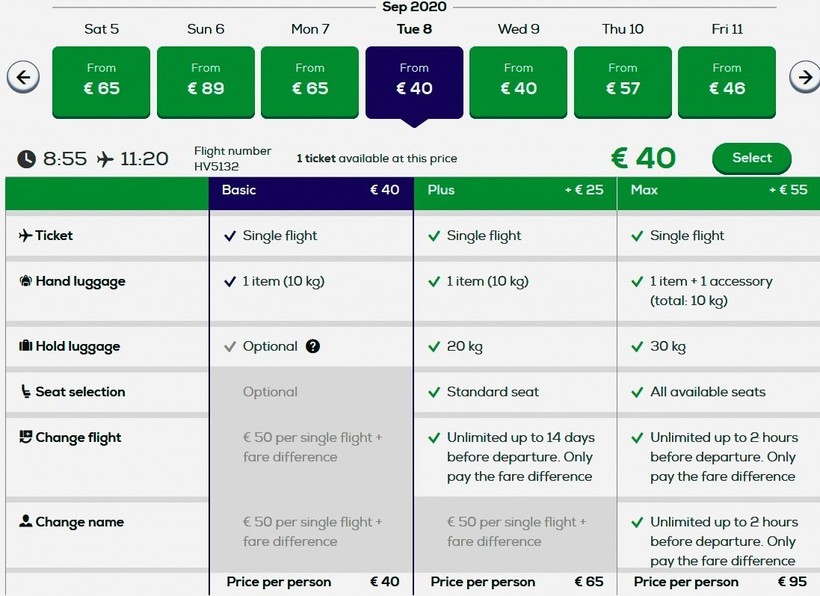 тарифам) у Transavia нужно доплачивать.