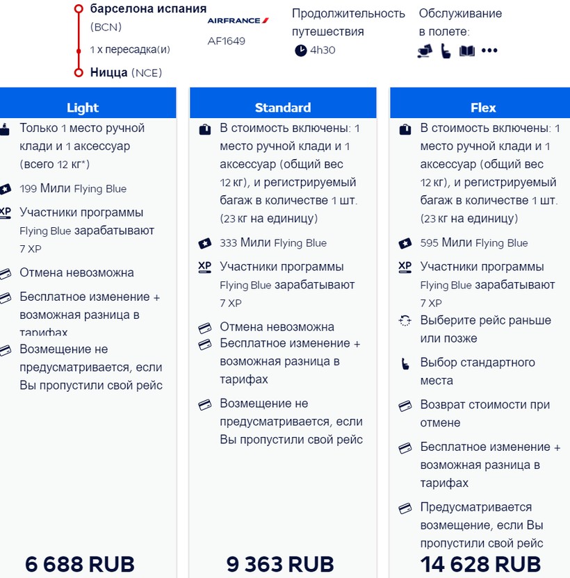 Преодолеть путь с операторами, осуществляющими беспересадочные рейсы, получится всего за 1,5 часа. Чаще всего, транзитные авиаперелеты проигрывают не только по продолжительности, но и по стоимости. Рекомендовать путешествие с пересадкой могу в исключительных случаях, когда билеты у прямых перевозчиков дорогие (на ближайшие даты). Например, долететь до Лазурного Берега можно с Air France за 4,5 часа (включая часовую стыковку в Париже) и 6500 ₽ (только туда с ручной кладью).
