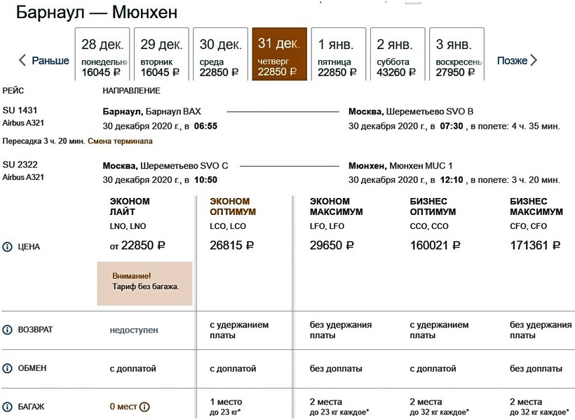 Другие варианты перелета можно посмотреть у авиакомпаний: