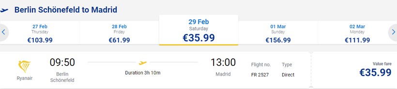 С британским лоукостером можно долететь до Мадрида из Берлина один раз в сутки, вылет осуществляется днем.