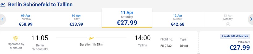 Британский лоукостер перевозит своих клиентов из Берлина в Таллин трижды в неделю, по вторникам, четвергам и воскресеньям. Самолеты отправляются утром.