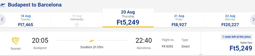 Билеты «туда-обратно» в декабре обойдутся вам всего в 6 619 рублей, а в июле придется заплатить за них не менее 17 079 рублей. В среднем же, долететь до Барселоны и вернуться в Будапешт можно за 10 533 рубля.