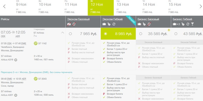 как лететь с S7 Airlines или «Аэрофлотом»,