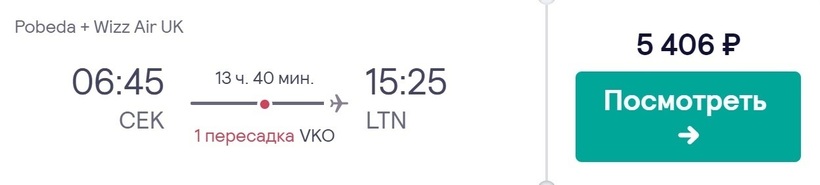 Более удобный вариант авиапутешествия — перелет только с лоукостерами: «Победа», Wizz Air UK. Дорога до места назначения займет 13,5 ч. Менять воздушную гавань в столице РФ не нужно будет. На пересадку дается 7 часов. Прилетите во Внуково и следующий вылет будет оттуда же. Цены на билеты стартуют с 5400 рублей (за три месяца до авиапутешествия). Вариант перелета также доступен 6–7 раз в неделю.