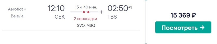 Есть более дешевый, но в то же время и более долгий вариант авиапутешествия. Его предлагают российская компания «Аэрофлот» и белорусская — «Белавиа». Дорога до места назначения займет 15,5 ч. Авиабилеты можно купить по более низкой цене — от 15300 рублей (за пару недель и более). Если сразу оплатите проездные документы в обратную сторону — получите небольшую скидку.
