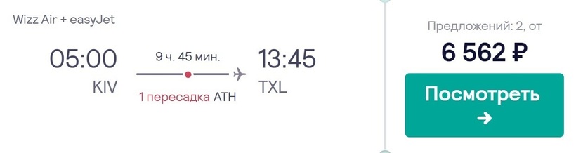 Да, прямое авиасообщение между городами есть, но рейсы выполняются не ежедневно. Напомню, что Wizz Air осуществляет рейсы только четыре раза в неделю. И если вам нужно быть в Берлине срочно, а в этот день самолеты лоукостера не летают — путешествуйте транзитом. Правда, по деньгам это выйдет минимум в четыре раза дороже. Так что советую пользоваться этим способом исключительно в экстренных случаях. Так, например, Wizz Air и easyJet летают в Берлин через Афины. Время в пути — 9,5 ч., на стыковку отводится 4,5 часа. Стоимость авиабилетов — от 6500 рублей (за месяц).