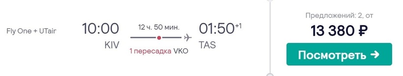 Более дешевый вариант — перелет с Fly One и S7. За полтора месяца билеты — от 13300 рублей. Общее время в пути — 13 часов. Стыковка — 7 часов (Внуково).