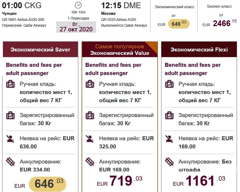 Южных авиалиний», и на 14500 ₽, чем у Qatar