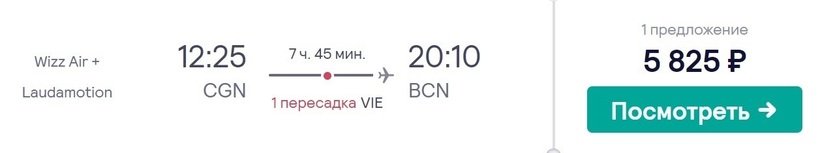 Этим вариантом пользуюсь только в тех случаях, когда не подходит время отправления прямого рейса. Рассматривать этот вариант как более бюджетный не могу порекомендовать, билеты дешевле, чем у Ryanair не найдете. Один из самых оптимальных транзитных перелетов по времени в пути и стоимости авиабилетов предлагают лоукостеры Wizz Air и Laudamotion. Дорога займет 7,5 ч. Из этого времени на стыковку в Вене уйдет около 4 часов. Билеты за месяц — от 5800 рублей.