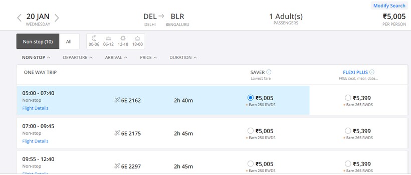 Лайнеры компании Vistara курсируют из Дели до Бангалора до 7 раз за сутки. Самолёты отправляются в утренние, дневные и вечерние часы. Заплатите минимум 5000 ₽. Авиабилеты на дневной и самый поздний рейсы стоят чуть дороже. Предусмотрен большой выбор тарифов.