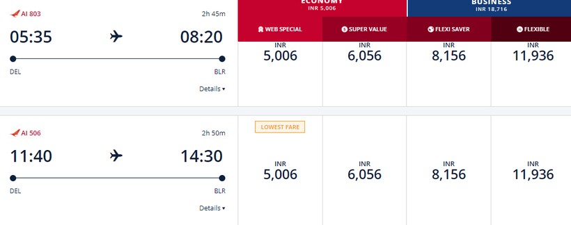 Air India (AI 2815) Airbus A320 NEO | 07:30 Дели (DEL) | 2 ч. 40 мин | 10:10 Бангалор (BLR) | ежедневно по 02.03 |