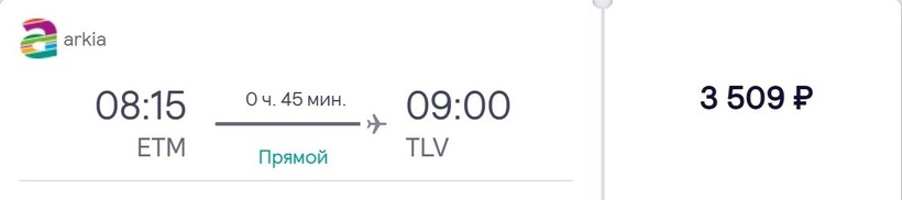 Альтернативой прямому рейсу может служить перелет с пересадками от авиакомпании Arkia. Минимальная стоимость билета составляет 27 932 рубля.