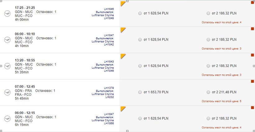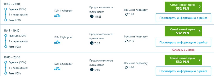 Самолеты отправляются из аэропорта Гданьска, посадка происходит в разных римских авиахабах — Фьюмичино или Чампино.