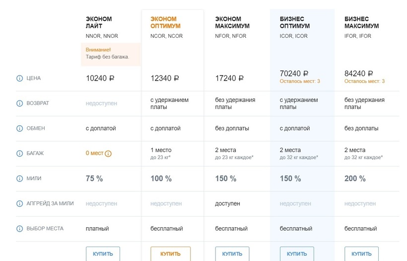 Билеты — от 10200 рублей (за неделю до отправления). Подчеркну, что это минимальная цена, даже если будете бронировать за несколько месяцев до вылета. Но рекомендую не откладывать покупку на последний момент, ведь самые бюджетные авиабилеты быстро разбирают. На эти рейсы перевозчик предлагает три тарифа в экономкласс: