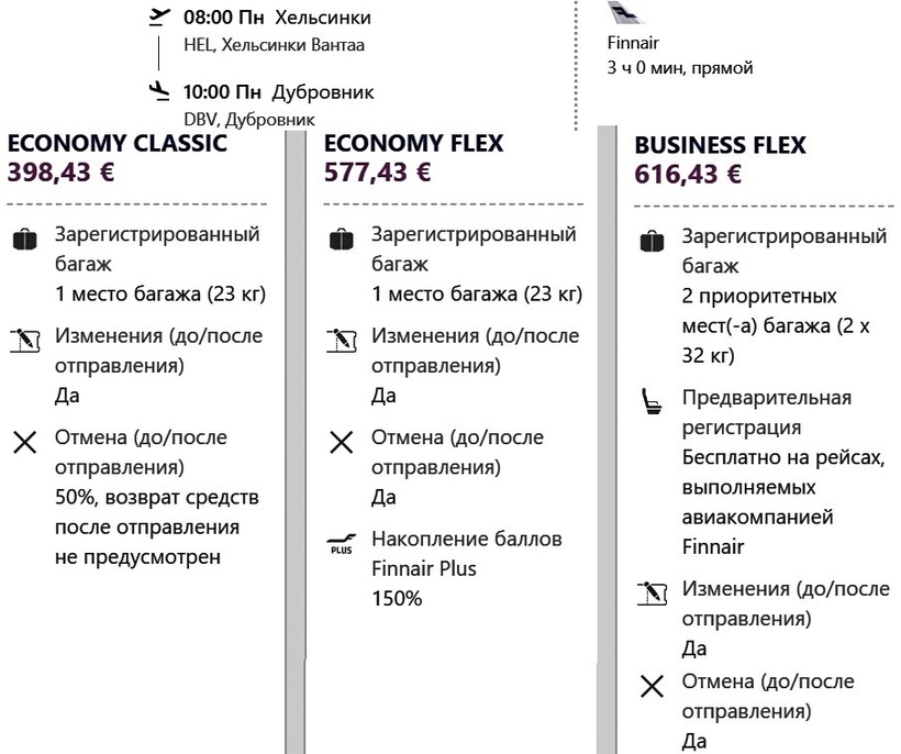 Finnair (AY 1831) Airbus A321 | 07:30 Хельсинки (HEL) | 3 ч. 00 мин | 09:30 Дубровник (DBV) | 24, 27 октября |