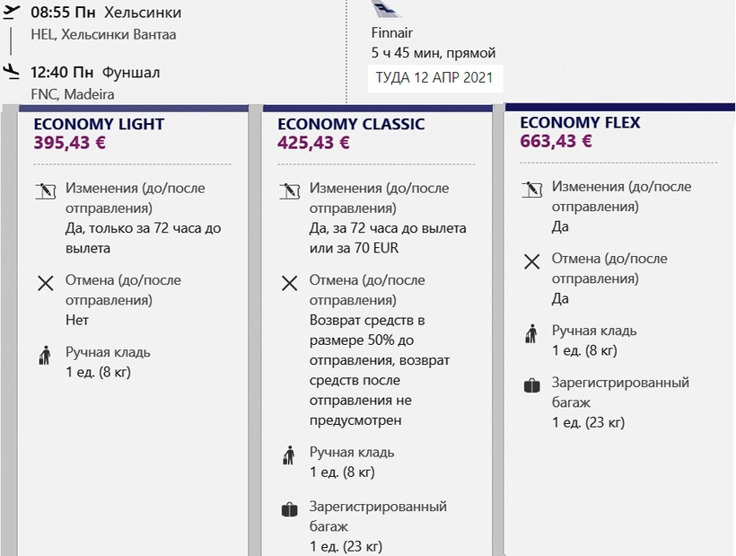 Finnair (AY 1731) Airbus A321 | 11:55 Хельсинки (HEL) | 6 ч. 00 мин | 15:55 Фуншал (FNC) | пн, ср по 22.10 |