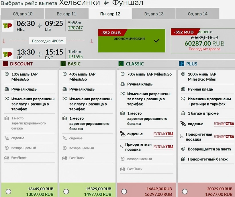 Туристам, которые хотят преодолеть путь максимально быстро, подойдет прямой перелет с Finnair. Но, напомню, придется подстраиваться под график рейсов авиакомпании. Любителям путешествовать налегке, а также тем, кто летит в одну сторону, выгоднее всего будет купить билет у лоукостера easyJet. А самое удобное расписание у TAP. Я выбрала полет туда-обратно с авиакомпанией Lufthansa, у которой билеты с багажом стоили дешевле минимум на 7000 ₽, чем у easyJet, на 9500 ₽, чем у TAP, и на 42000 ₽, чем у прямого перевозчика.