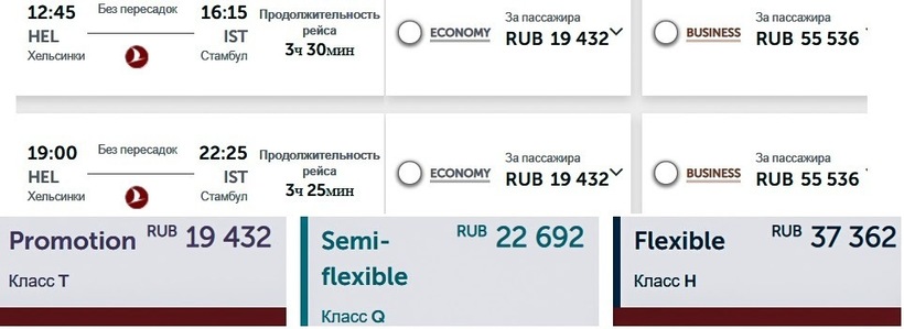 Turkish Airlines (TK 1762) Airbus A320 | 12:30 Хельсинки (HEL) | 3 ч. 45 мин | 17:15 Стамбул (IST) | 26, 27, 28, 31 октября, 1, 2, 3, 4, 7, 8, 9, 10, 11, 14, 15, 16, 17, 18, 21, 22 ноября, … |