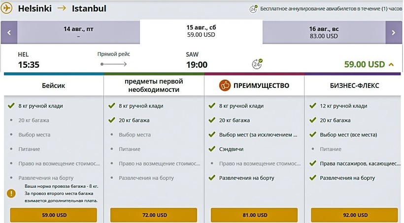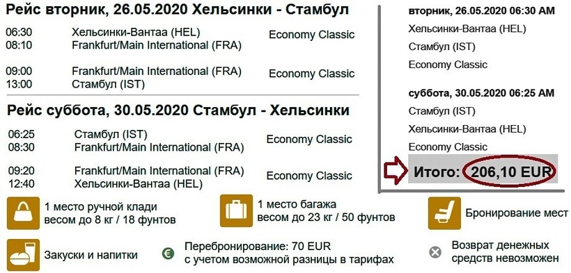 Pegasus (PC 1313) Airbus А321 | 13:35 Хельсинки (HEL) | 3 ч. 40 мин | 17:15 Стамбул (SAW) | 8 октября |