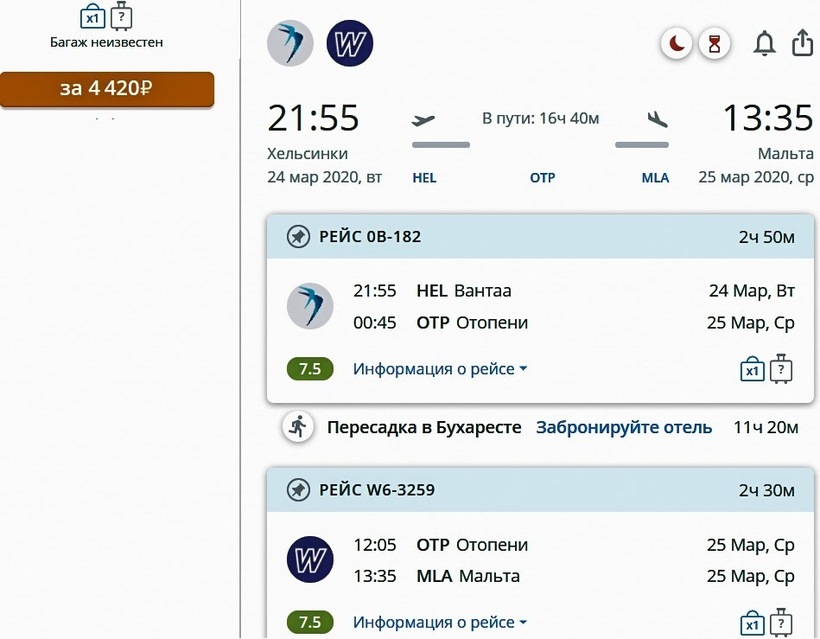 Кроме упомянутых мной авиаперевозчиков, тем, кто обычно ищет максимально бюджетный вариант путешествия и не особо уделяет внимание комфорту и времени в пути, рекомендую лететь с лоукостерами. Например, всего за 4500 ₽ (с ручной кладью) можно преодолеть маршрут с румынской бюджетной компанией Blue Air и венгерской Wizz Air. Правда, займет такой полет около 17 часов, потому что пересадка в Бухаресте будет длиться 11,5 часов. И поскольку стыковка ночная, придется дополнительно оплатить проживание в гостинице.