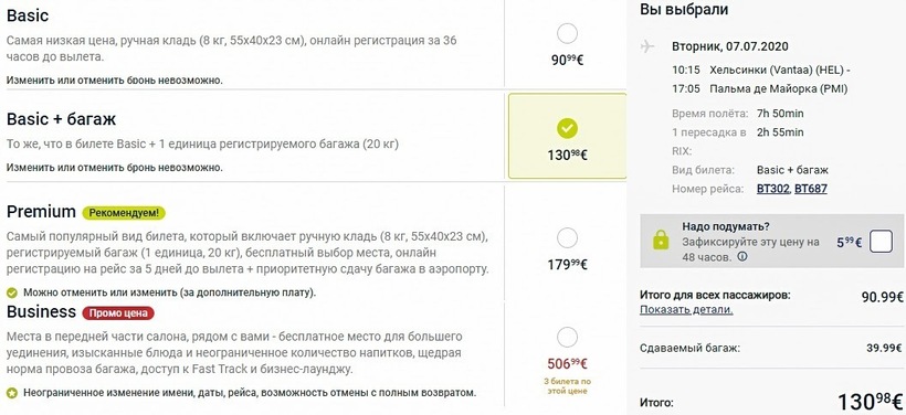 airBaltic. Преодолеть маршрут с латвийским оператором можно с мая по ноябрь по воскресеньям (в июле и августе — еще и по вторникам). Полет с трехчасовой пересадкой в Риге займет 8 ч. и обойдется туда от 9000 ₽, туда-обратно — от 18000 ₽ (без багажа — от 6500 ₽ и 12500 ₽ соответственно). Бизнес-класс — от 35500 ₽.