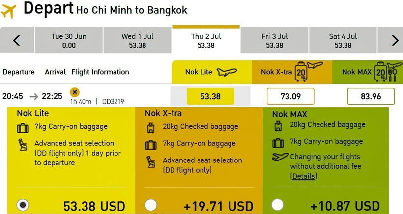 Из операторов, предлагающих круглогодичные авиаперелеты, самые недорогие билеты у Thai AirAsia и Nok Air (цены сопоставимы). Но я летала по маршруту осенью с VietJet Air, потому что стоимость путешествия туда-обратно у этого перевозчика была ниже на 3000 ₽, чем у других бюджетных авиакомпаний. Любителям бизнес-класса выгоднее всего преодолевать маршрут на крыльях Vietnam Airlines.