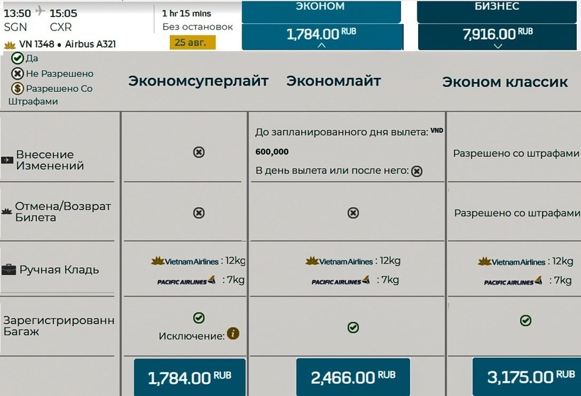 Vietjet air (VJ 604) Airbus А321 | 08:00 Хошимин (SGN) | 1 ч. 00 мин | 09:00 Нячанг (CXR) | 25 октября |
