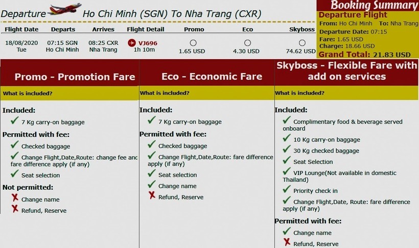 Jetstar Pacific совершает каждый день по два авиаперелета — утренний и дневной. Билеты у Jetstar туда с багажом стоят от 2250 ₽, если купить и на обратную дорогу, это обойдется от 4500 ₽ (с ручной кладью — от 1600 ₽ и 3200 ₽ соответственно). Данный лоукостер предлагает авиаперелет лишь в классе эконом. У Jetstar рекомендую приобретать авиабилеты за 1 месяц до путешествия, так как на ближайшие даты цены немного выше — на 200–2000 ₽.