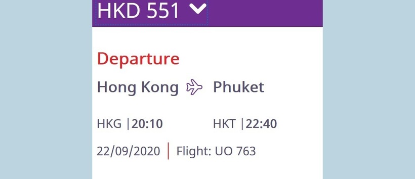 Hong Kong Express Airways (UO 764) Airbus A320 NEO | 20:10 Гонконг (HKG) | 3 ч. 35 мин | 22:45 Остров Пхукет (HKT) | 7, 8, 9, 10, 11, 12 октября |