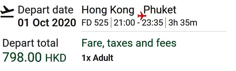 Hong Kong Express Airways (UO 724) Airbus А321 | 07:20 Гонконг (HKG) | 3 ч. 55 мин | 10:15 Остров Пхукет (HKT) | 26 октября |
