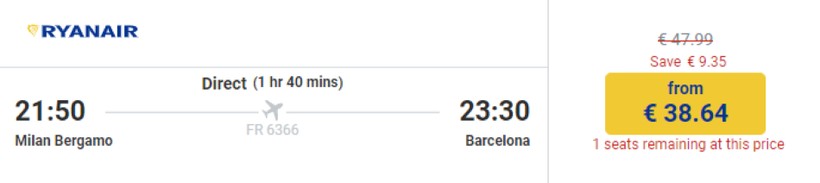 Я довольно часто пользуюсь услугами бюджетных авиакомпаний, ведь у них обычно самые низкие цены. Добраться из Иркутска до Барселоны можно с российским оператором «Победа» и ирландским Ryanair. Из минусов отмечу самостоятельную пересадку в миланском аэропорту Бергамо. Продолжительность всего полета составит 22 часа. Самолет до Милана вылетает из Иркутска утром, следует транзитом через Москву. Рейс не ежедневный, отсутствует по вторникам и четвергам.